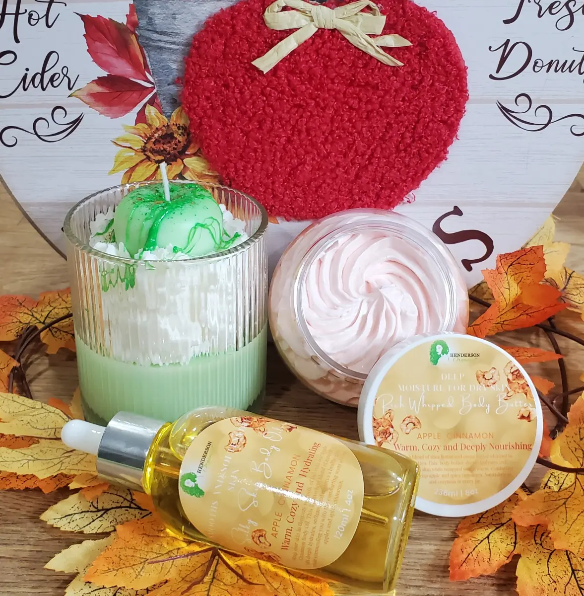 Fall inspired body care and candle set for cozy evenings and relaxed self care