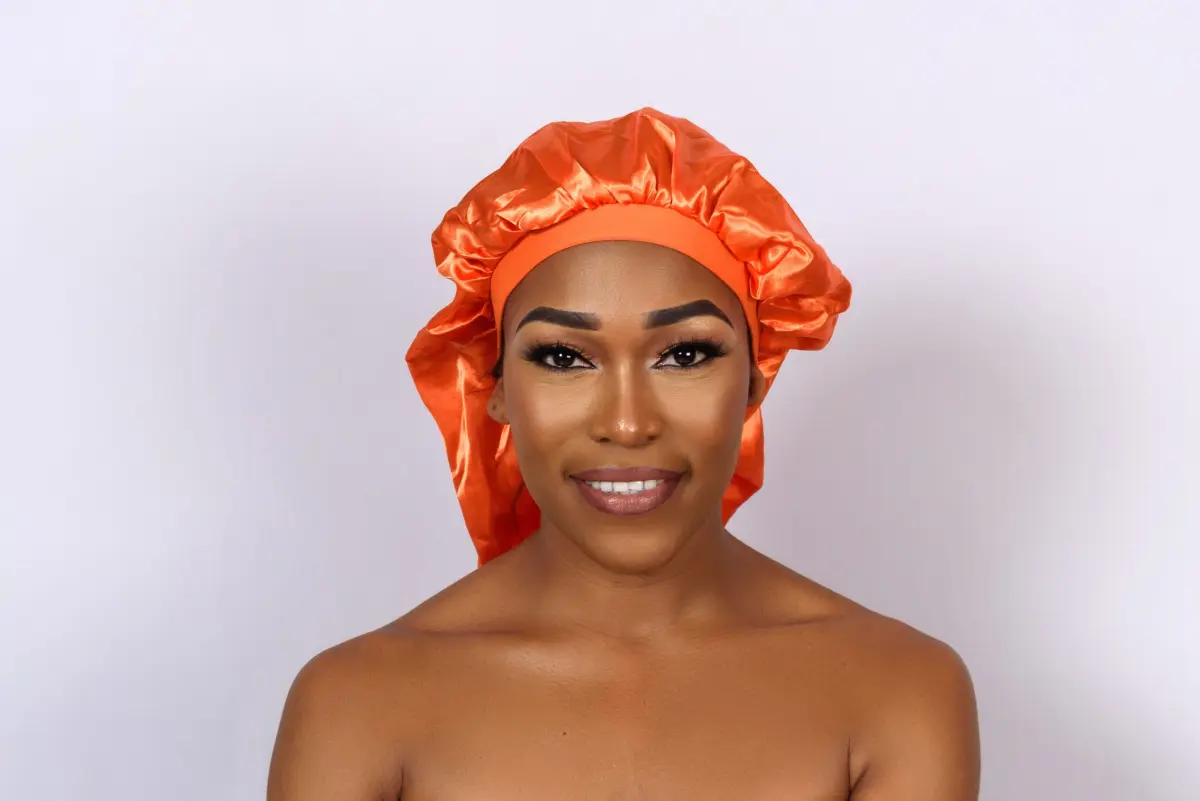 Comfortable satin bonnet that stays on and supports healthy looking hair