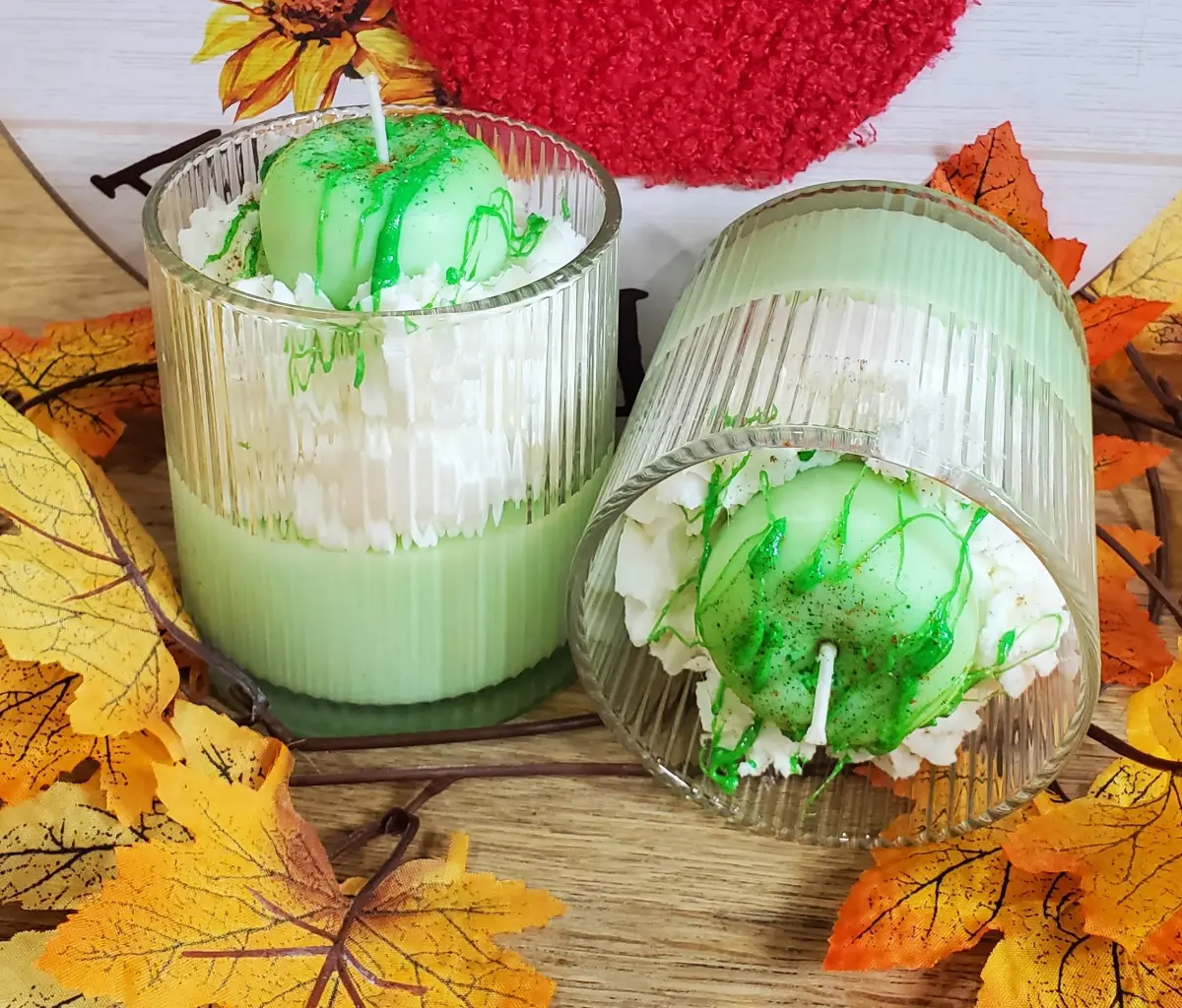 Cozy Nights Apple Cinnamon Candle in Green glass for warm and soothing evenings