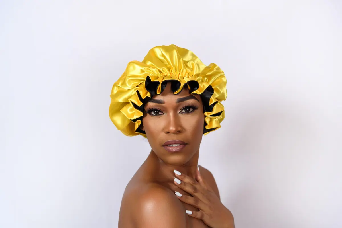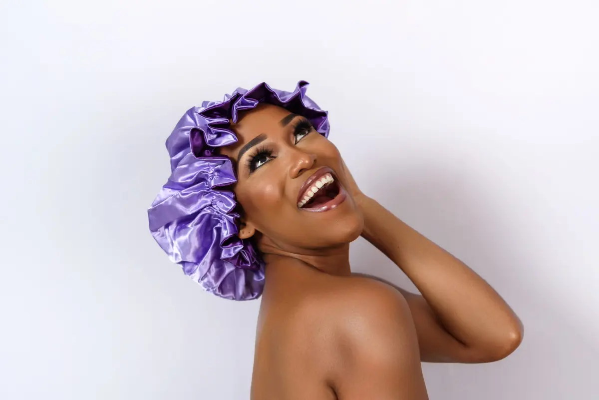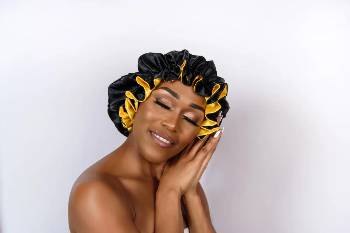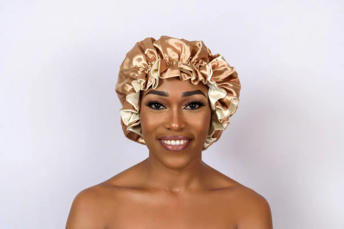 Protective sleep bonnet that supports healthy looking hair every morning